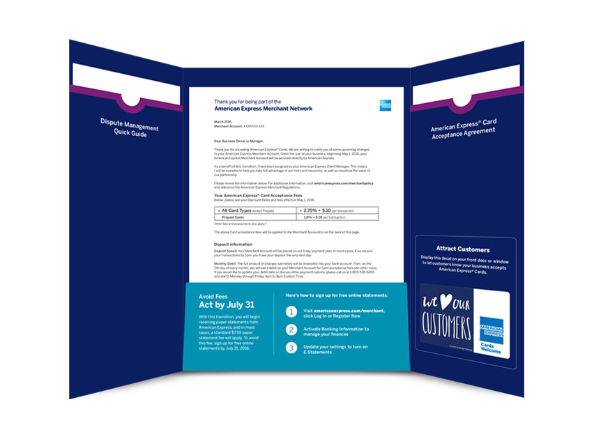 Designed a welcome kit for American Express Small Merchants. Also worked closely with print shops to produce all collaterals for this package.